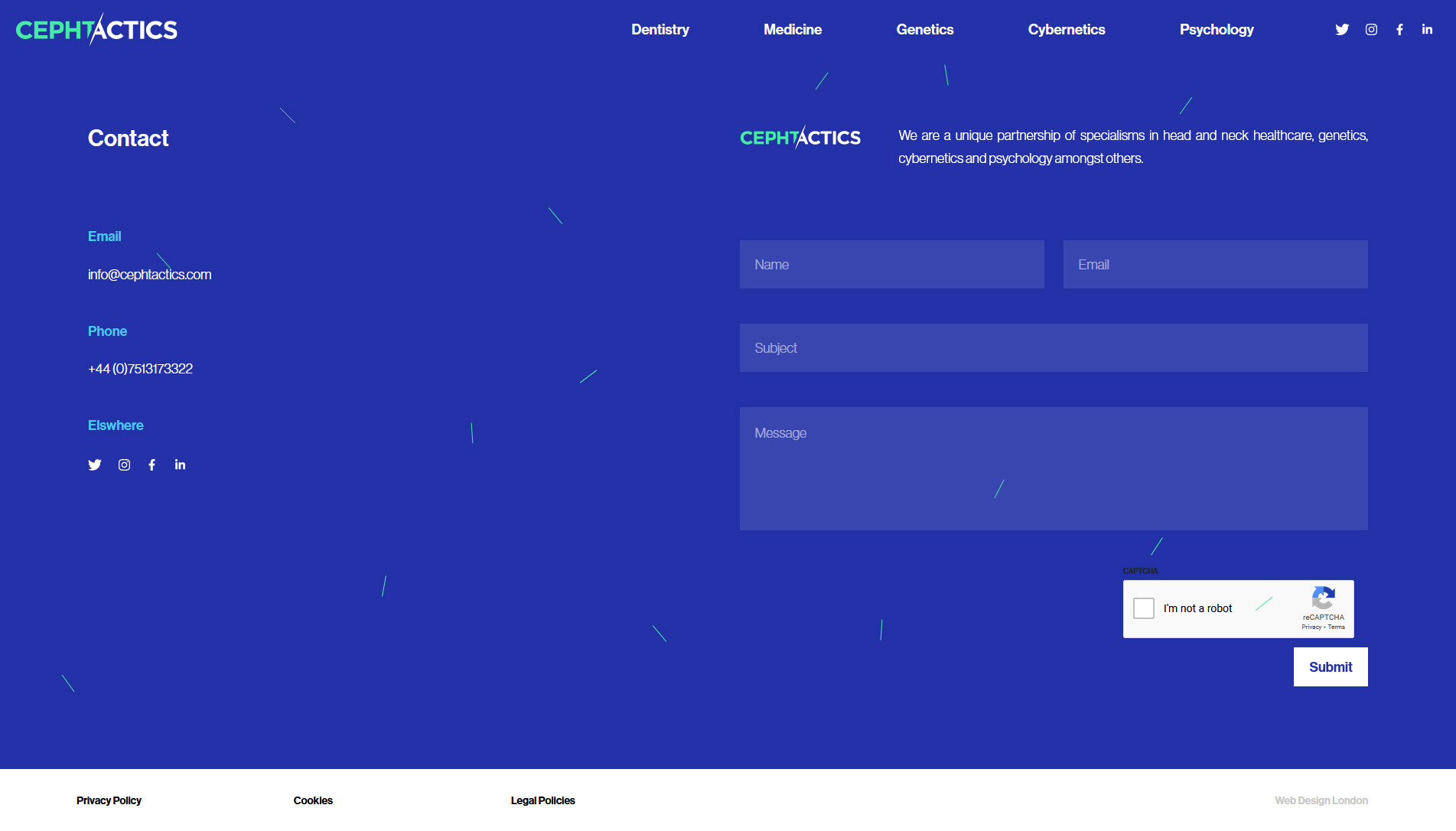 We also provided a contact form at the end of the page for general enquiries unrelated to any specific Cephtactics sub-site.