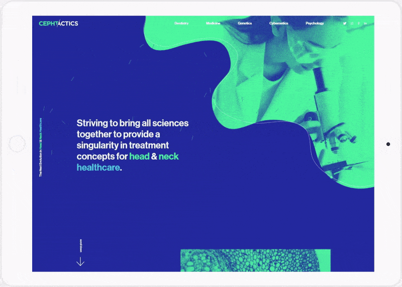 Making use of blues & greens often associated with the medical profession, the design team at CreativeWeb chose a very clean, white-space based layout for the Cephtactics landing page. We wanted it to look modern & high-end, while maintaining a professional feel to avoid being overbearing on the user.