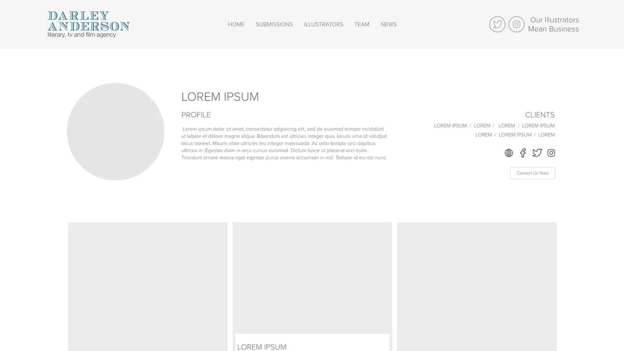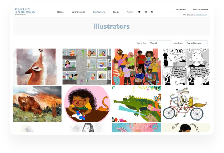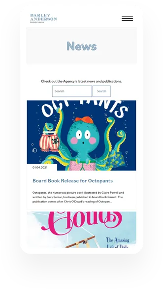 A clean and simple website with an easy to use CMS was important for the team to keep their clients up to date with the latest news and their illustrators portfolios current. WordPress provided the perfect solution for team to update the content and we also integrated a live Instagram feed to the homepage to eliminate the need for the Darley Anderson to duplicate their content across platforms.
