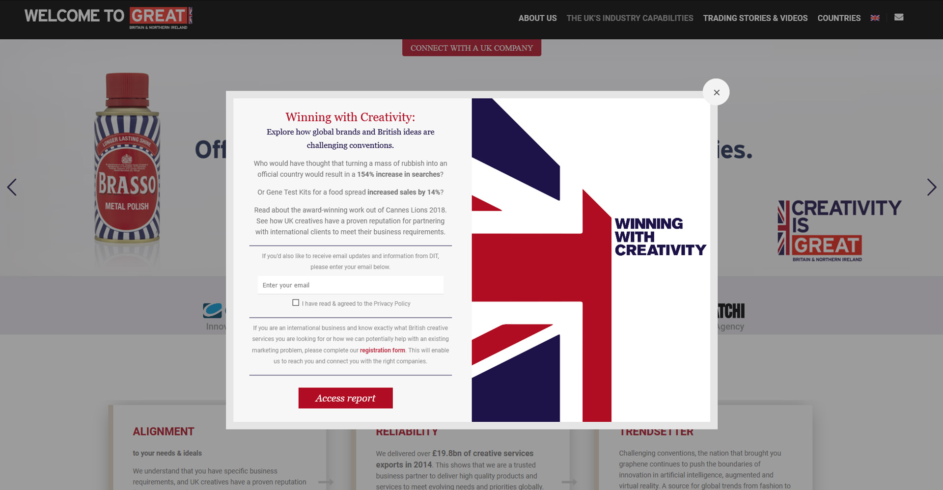 The UK Government were launching their GREAT trade campaign to support business looking for trade & support in the UK, and needed a website to promote each area of industry and generate leads. They chose CreativeWeb to create & maintain this platform, based on the strength of our portfolio and work with well-known & established businesses.