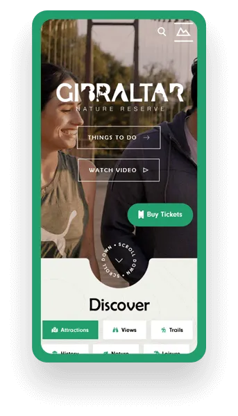 The website design for the Gibraltar Nature Reserve is visually compelling, featuring large Gibraltar landscapes through immersive video and drone content.
