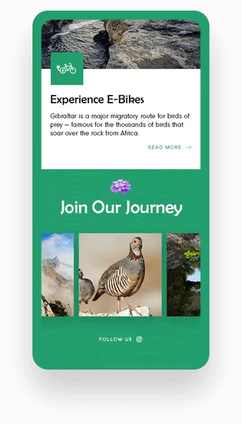 The website design for the Gibraltar Nature Reserve is visually compelling, featuring large Gibraltar landscapes through immersive video and drone content.