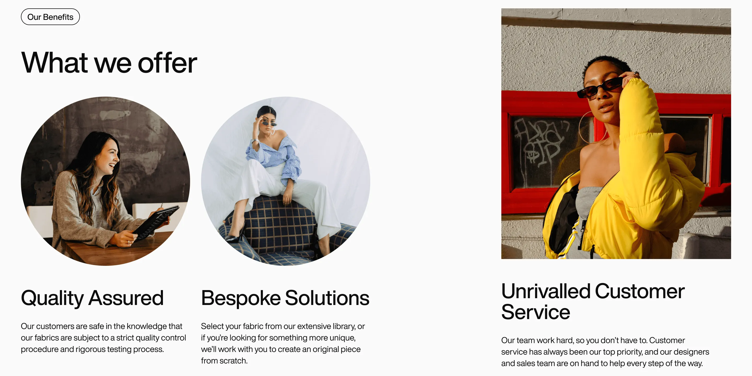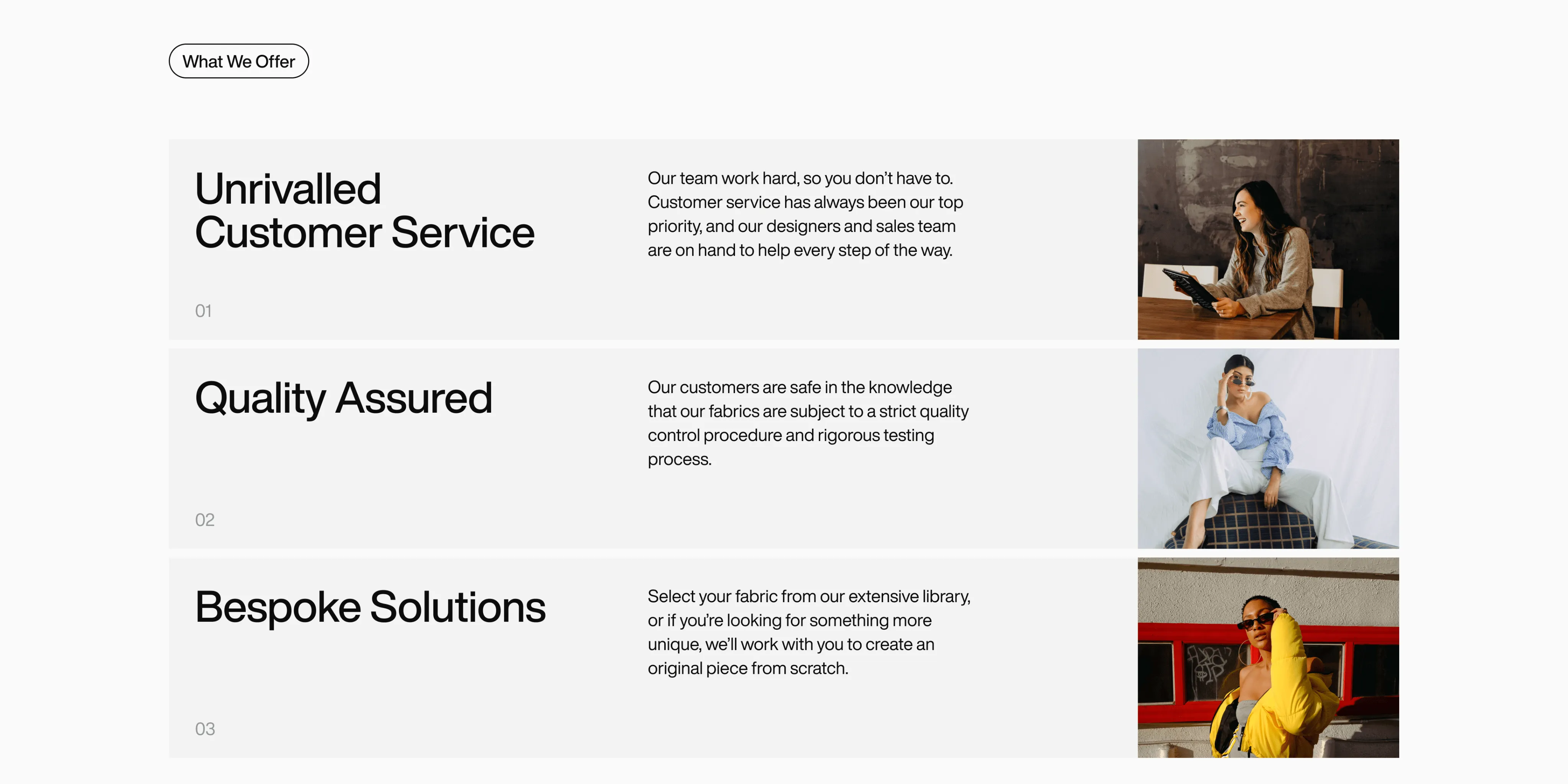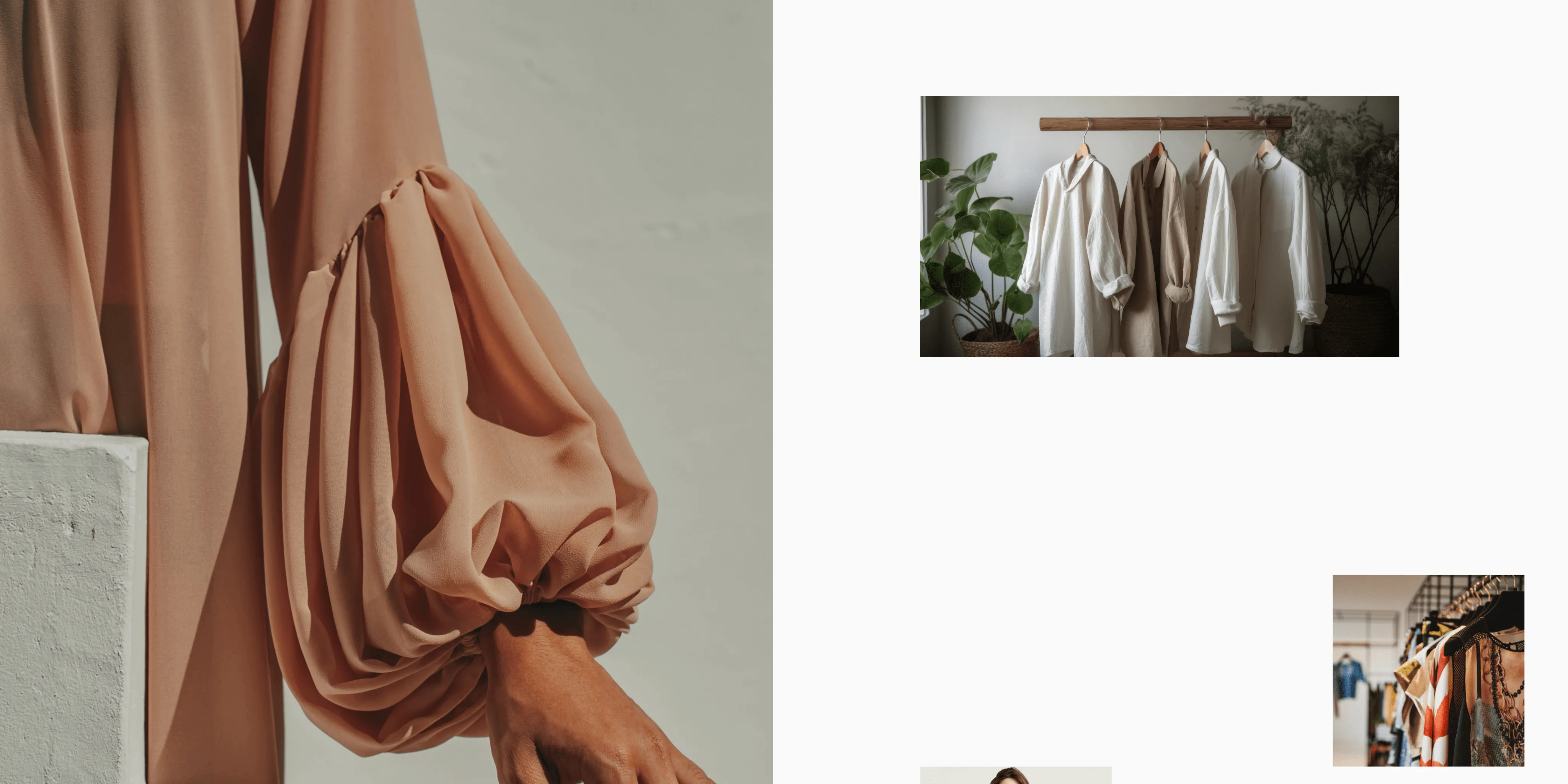 We made these visuals a key focus, ensuring they complemented the modern and stylish aesthetic. It was important to the client that the materials featured in the clothing reflected natural and sustainable materials, which we highlighted through our image selection to align with the brand’s values of eco-consciousness and sustainability.