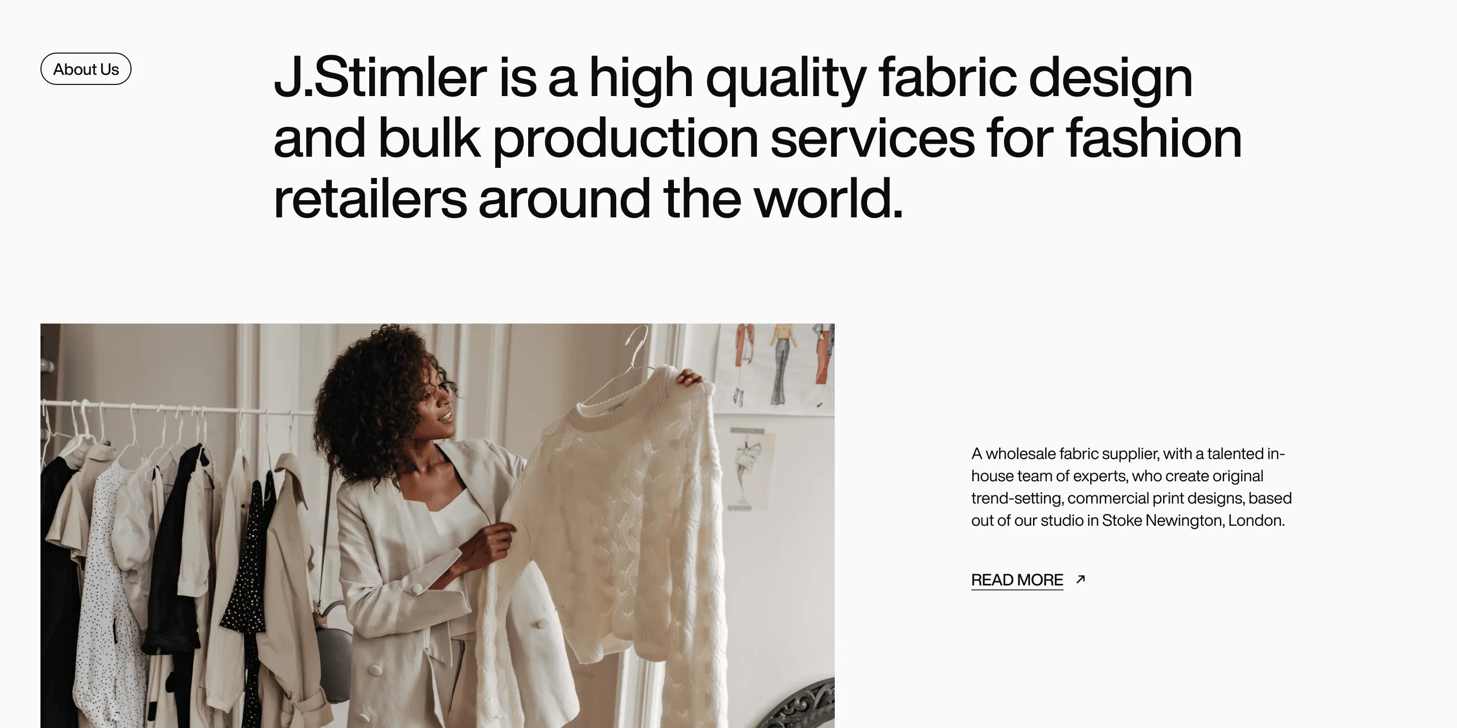 Bespoke web design for J. Stimler, highlighting their premium fabric design and production services.