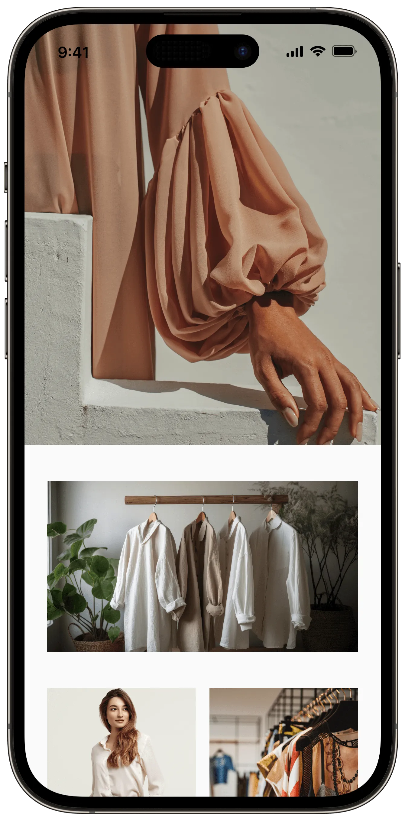 We made these visuals a key focus, ensuring they complemented the modern and stylish aesthetic. It was important to the client that the materials featured in the clothing reflected natural and sustainable materials, which we highlighted through our image selection to align with the brand’s values of eco-consciousness and sustainability.