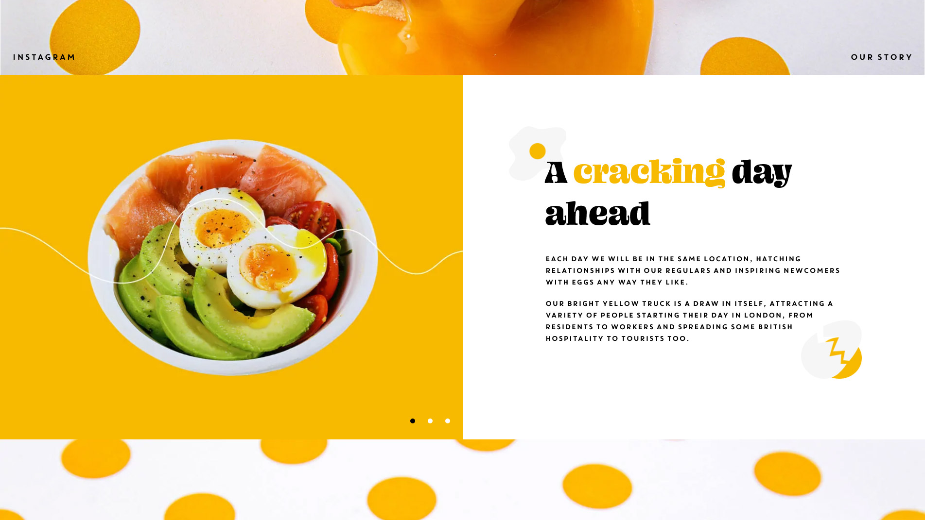 The Egg Truck wanted their website to be big, bold & impactful. Their branding made use of contrasting white, black & orange colours and stylised sketches, so we looked to incorporate those into the site alongside their bespoke font face.